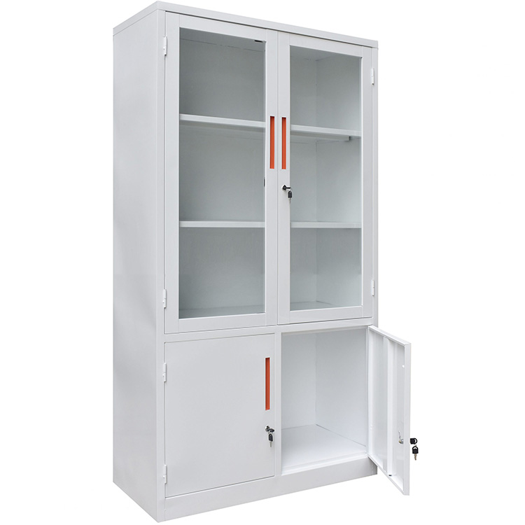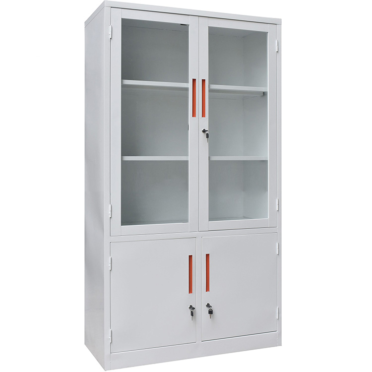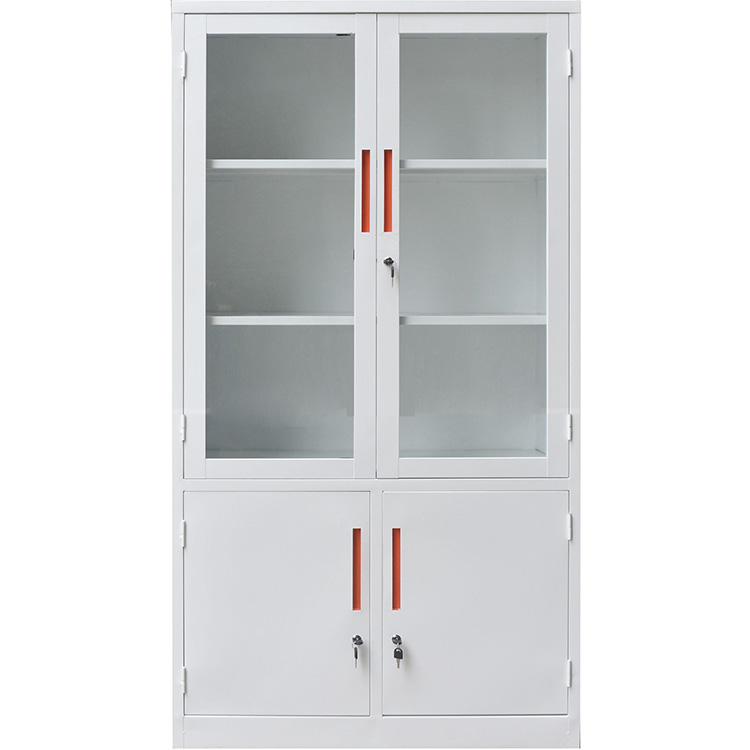 Tủ sắt văn phòng BT-K3D được làm từ thép sơn tĩnh điện màu trắng, bền đẹp và an toàn khi sử dụng. Tủ có khoang trên là cánh kính với 2 đợt cố định, khoang dưới có 2 cánh sắt mở.