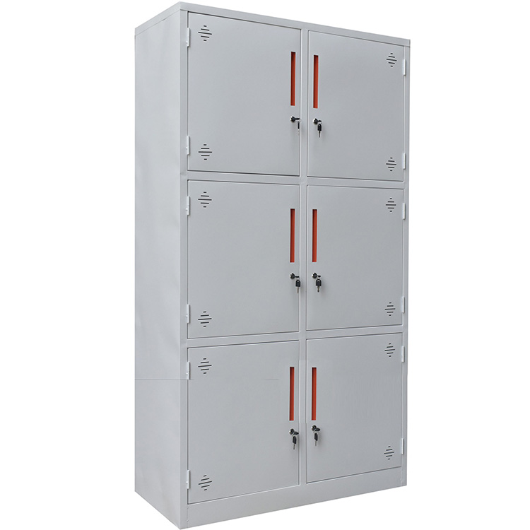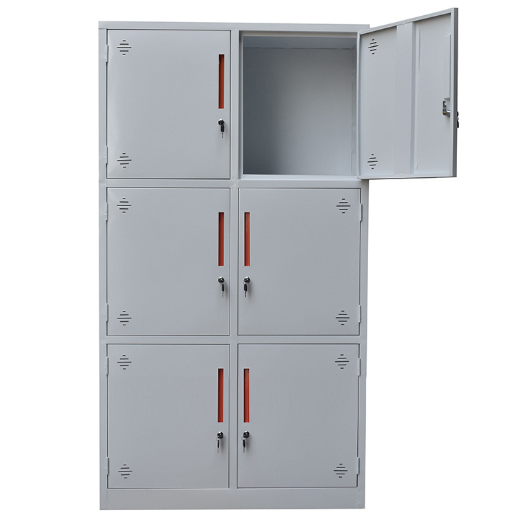 Tủ gồm 6 khoang. mỗi khoang có 01 cánh+01 khóa Locker+tay nắm sắt âm hiện đại.
