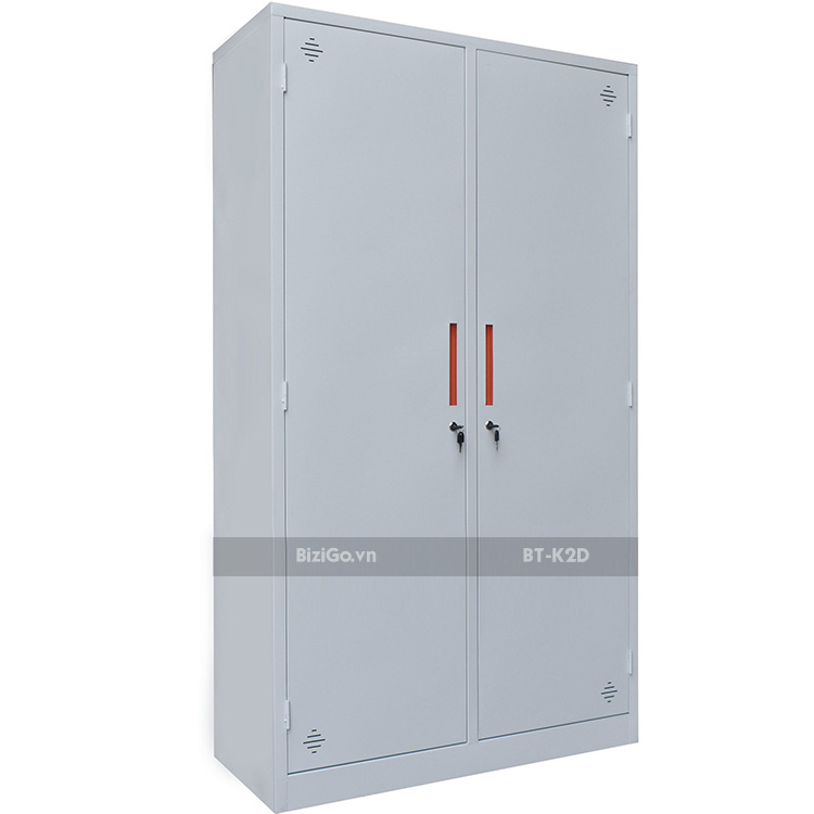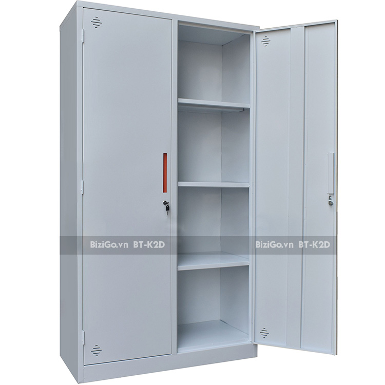 - Tủ gồm 2 khoang lớn, 2 cánh mở, mỗi cánh có 01 khóa riêng biệt, tay nắm mở hiện đại, mỗi khoang bên trong có 3 đợt cố định.